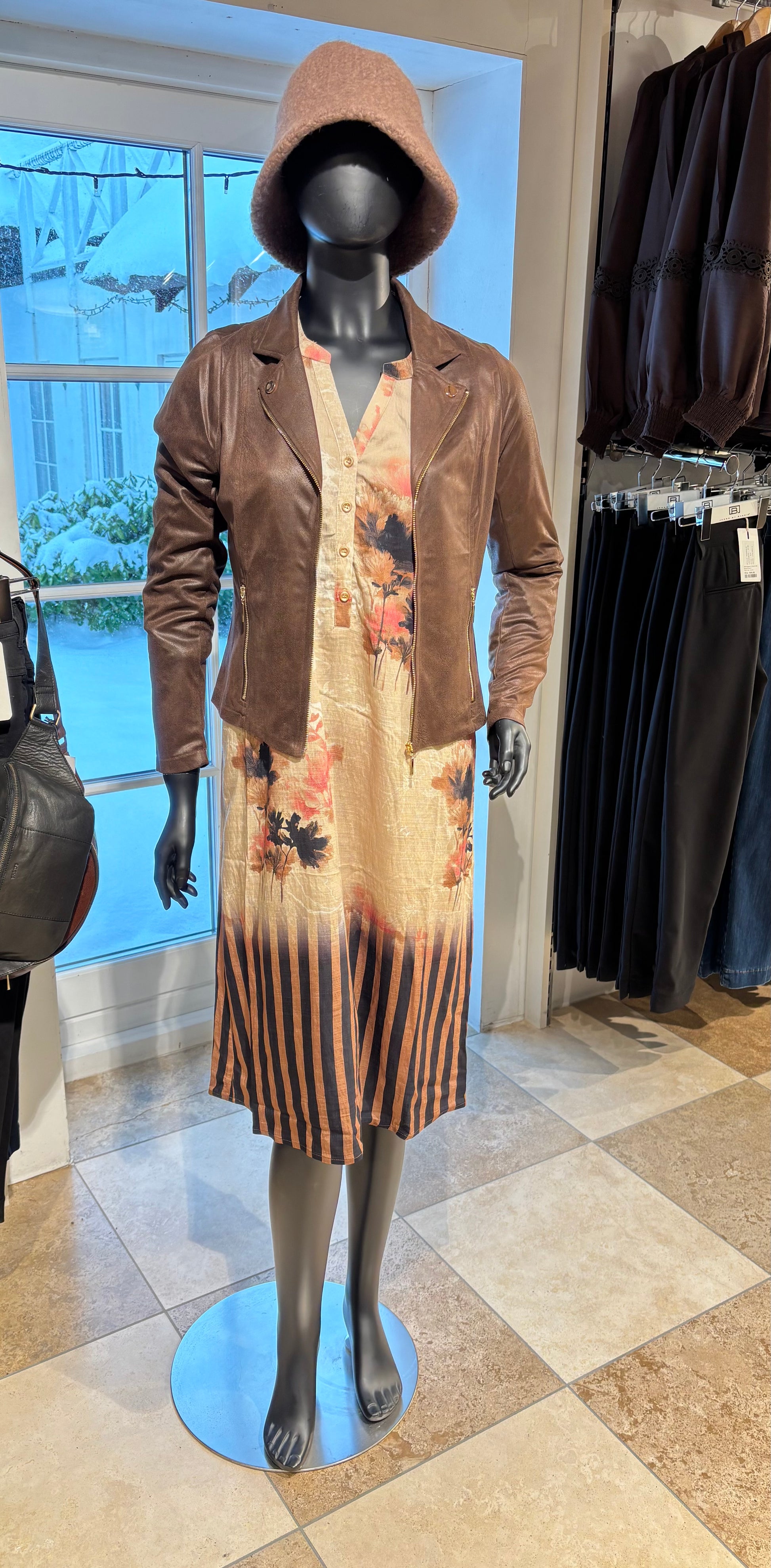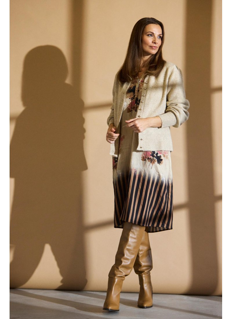Denne smarte kjole med et skønt print, kombinerer tidløs elegance med moderne stil. Perfekt til enhver lejlighed, hvor du ønsker at skille dig ud.
