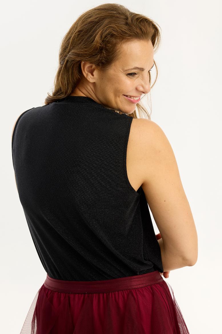 Smuk skinnende meget elastisk top der kan gøre det meste festligt.