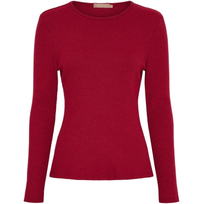 Utrolig lækker bambus T-shirt fra LUXZUZ ONE TWO. Med lange slanke ærmer samt bundkant afsluttet pænt med en fin bølgende søm. Anvendelig T-shirt med elasthane, der kan bruges under kjoler, veste, strik eller under en blazer.