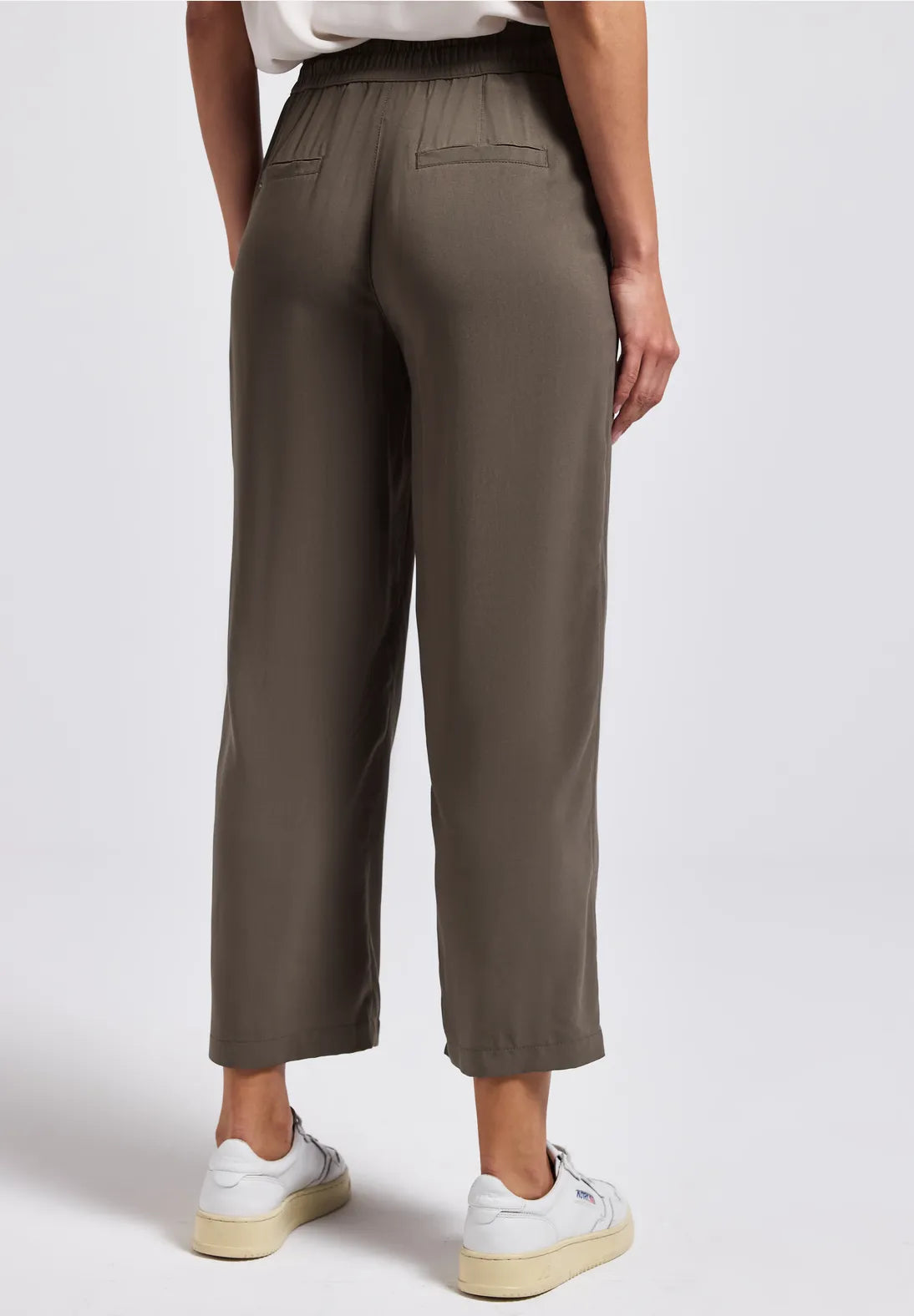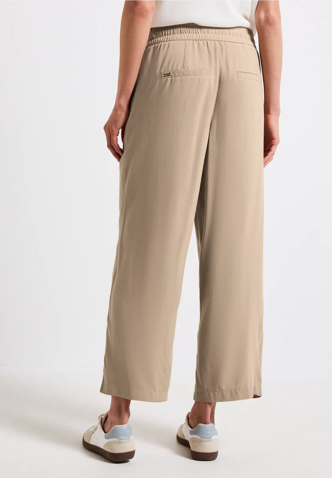 Disse damebukser med vide ben fra Street One kombinerer en afslappet, løs pasform med en feminin høj talje. Sidelommer og en elastisk linning med snøre sikrer et afslappet look og exceptionel komfort. Det lette viskosestof gør dem til den perfekte ledsager til luftige, stilfulde sommeroutfits.